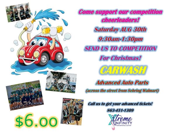 These competition cheerleaders are ready to get your vehicle all shined up! Call us for advanced tickets or feel free to stop by between 9:30am - 1:30pm. We would love your support. Not available that day but still want to support the team, contact us for a donation.